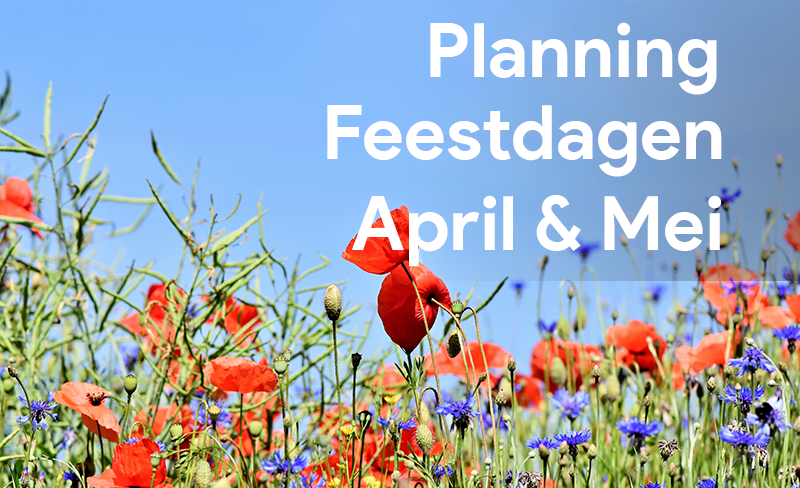 Tijdens officiele feestdagen zijn wij gesloten. Dat is op: 2e Paasdag, Koningsdag, Hemelvaartsdag en 2e Pinksterdag.